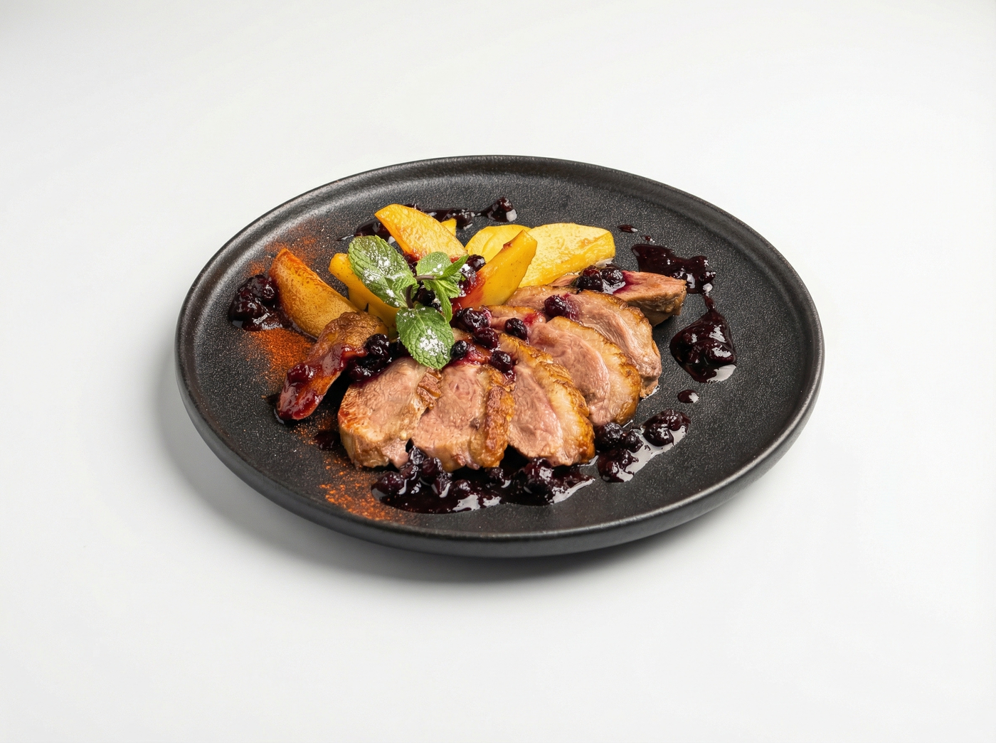 Филе Утки с клюквенным соусом и Яблоками конфи