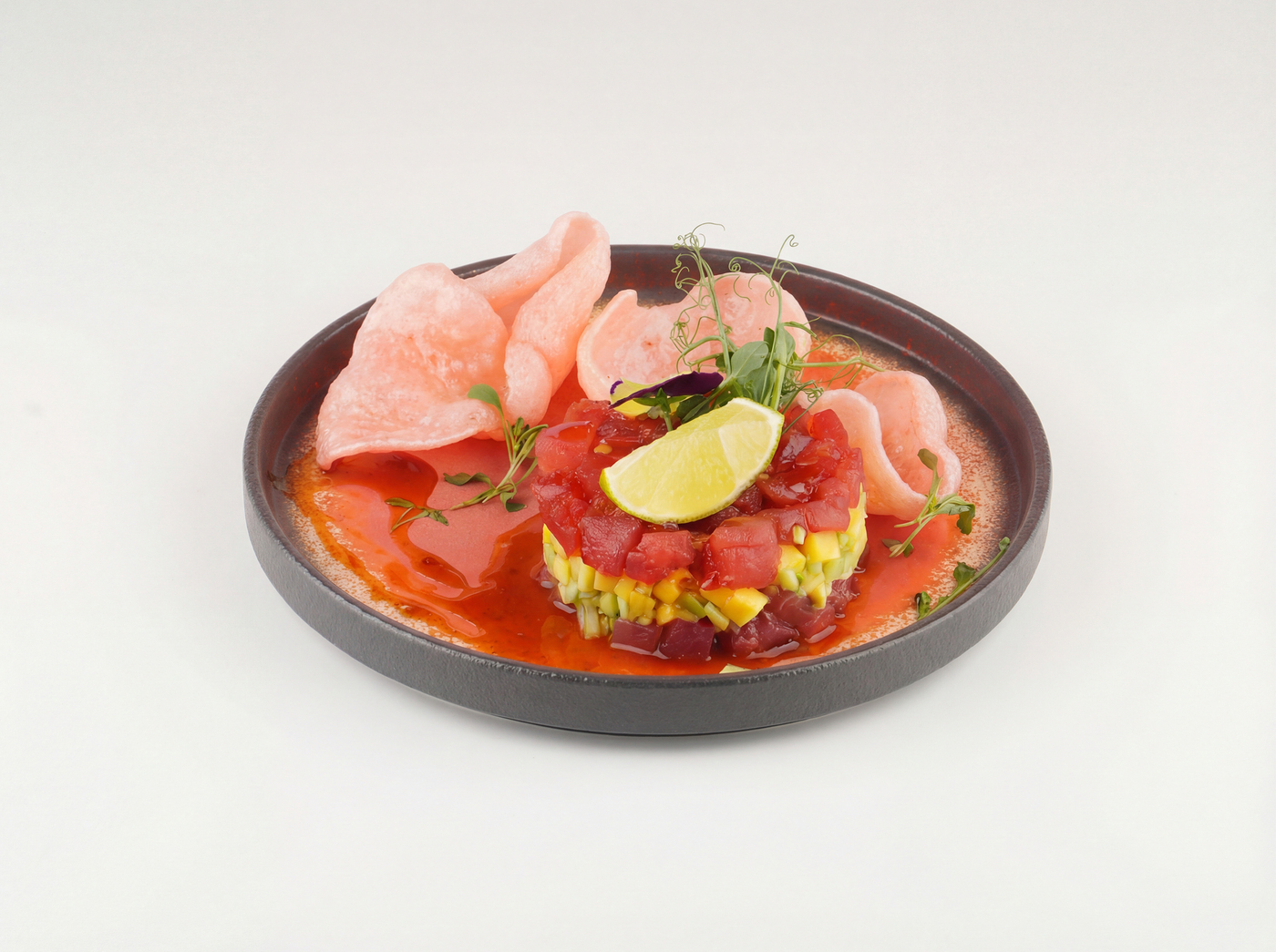Филе форели в нежном сливочно-икорном соусе, поданное с гарниром из цветной...
